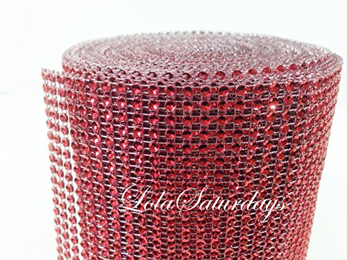 LolaSaturdays 4.5"x 30FT Diamond Rhinestone Ribbon Wrap Roll- Cake and party decoration (Diamond, Red)
