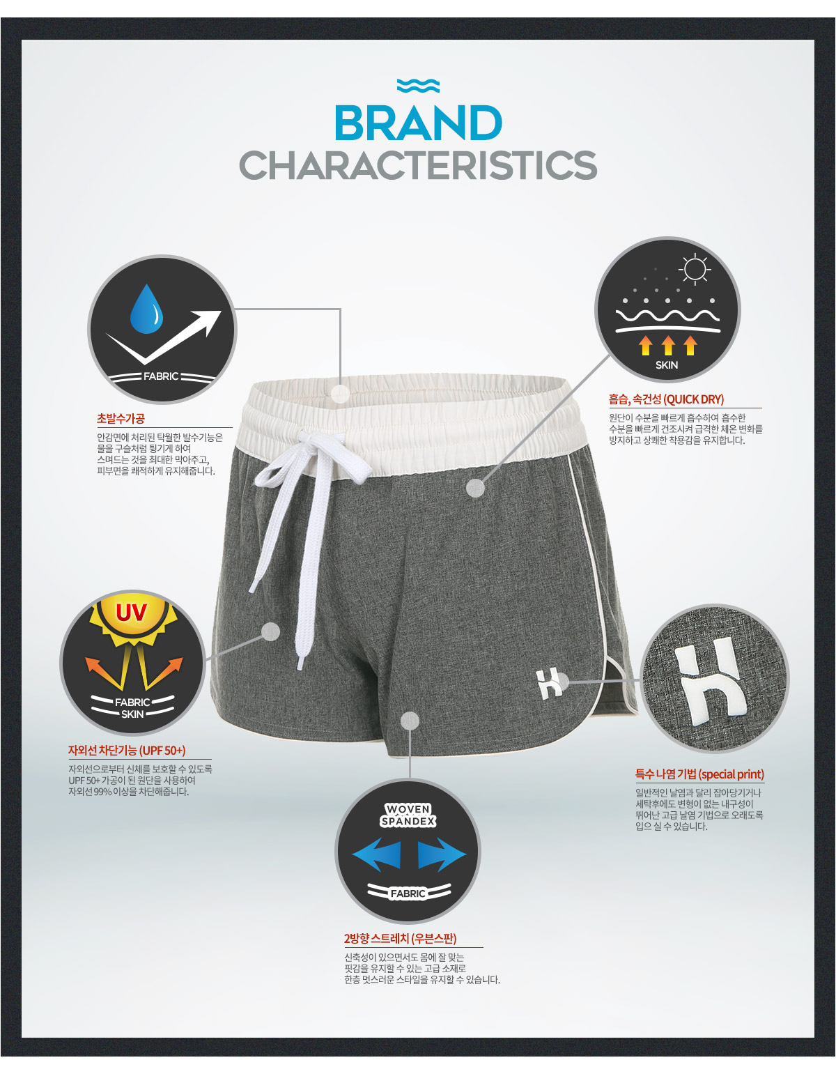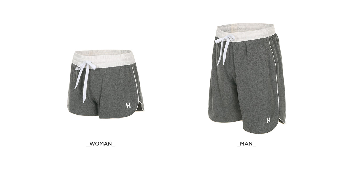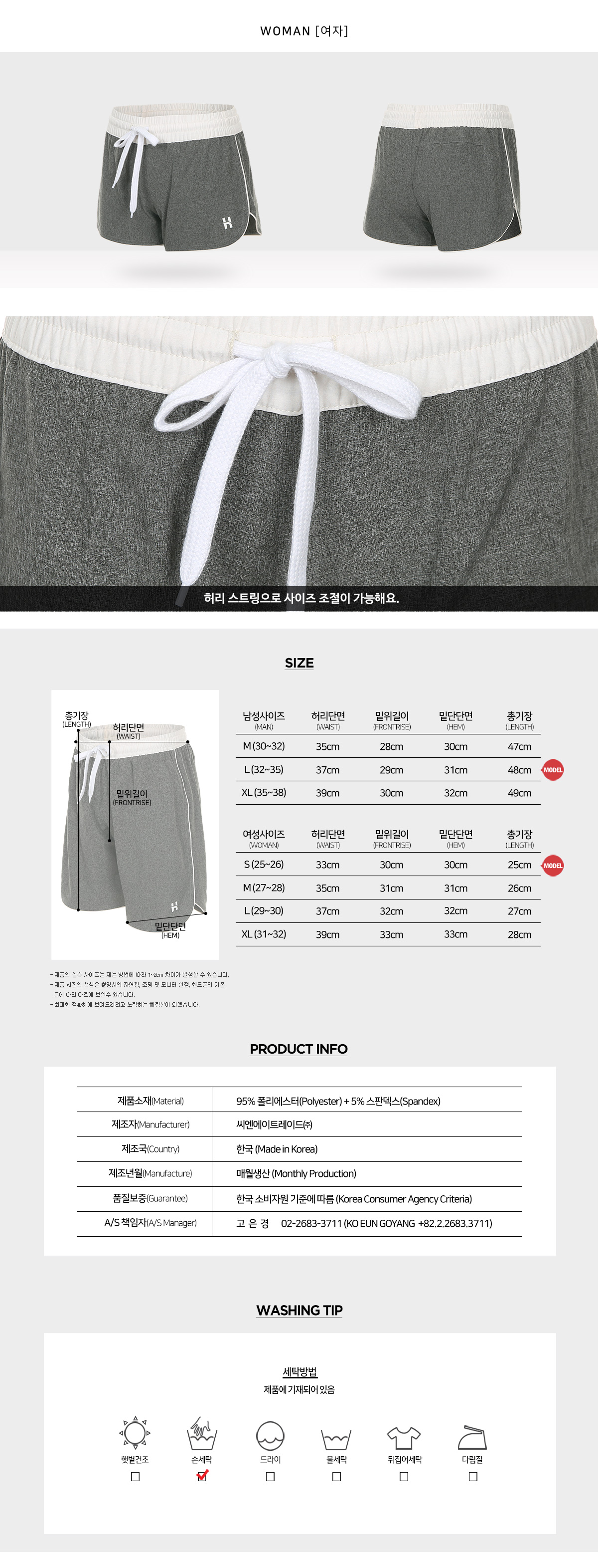 그레이와 아이보리 컬러의 배색으로 세련된 비치팬츠입니다.