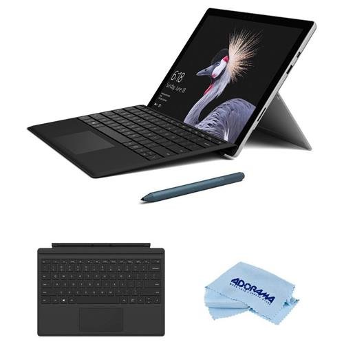 -. Feature : Surface Pro - Power supply - Quick Start Guide - Safety and warranty documents - Warranty 1-year limited hardware warranty - Microsoft Surface Pro Type Cover Black - Microfiber Cloth / The most versatile laptop: Better than ever, the new Surface Pro gives you a best-in-class laptop, plus the versatility of a studio and tablet. The stunning PixelSense Display supports Surface Pen and touch, while up to 13.5 hours of battery life gives you plenty of juice to work all day and play all night / Uncompromising mobility: Create, study, work, and play virtually anywhere. The ultra-light Surface Pro gives you the ultimate in mobile productivity, all-day battery life, plus a softer, ultraportable design with rounded edges. / Surface Pro delivers even more speed and performance: Thanks to a powerful Intel Core processor that runs full desktop apps with ease plus 50% more battery life and 50% more performance than Surface Pro 4. Bring your ideas to life in brilliant color on the high-resolution PixelSense Display with a stunning screen that responds to your touch. / The best of Microsoft at your fingertips: Choose the laptop that works perfectly with Surface Pen, Surface Dial, and Office, and runs the full Windows experience, including 3D creation tools. Enjoy fast, secured, password-free sign-in with Windows Hello.