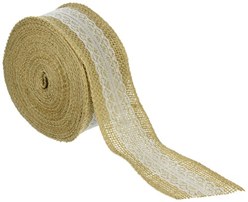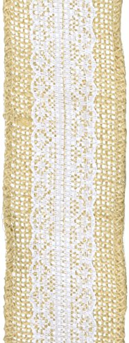 HUJI Natural Jute Burlap with Lace Ribbon for Arts Crafts Wedding Cake Rustic Decorations (10 yd, 2" Beige & White Lace)