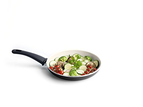 The GreenLife Soft Grip 8" Ceramic Non-Stick Open Frypan, Black makes the perfect addition to any kitchen. The high performance Thermolon ceramic non-stick coating is long lasting and easy to clean, made without PFAS, PFOA, lead or cadmium. The black aluminum reinforced body adds a touch of style to your kitchen, while the matching soft-grip handles provide much-needed comfort. The dishwasher-safe construction makes cleanup a breeze.Feature