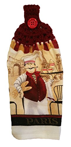 Handcrafted Burgundy Crochet Topped Paris Chef Theme Kitchen Towel