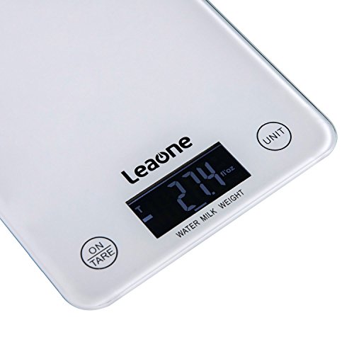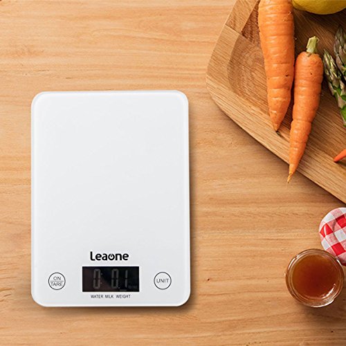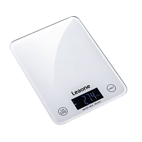LEAONE Digital Kitchen Food Scale, with LCD Display and Easy to Clean Surface 15.4lb 7kg White ( Batteries Included) - ZB1007