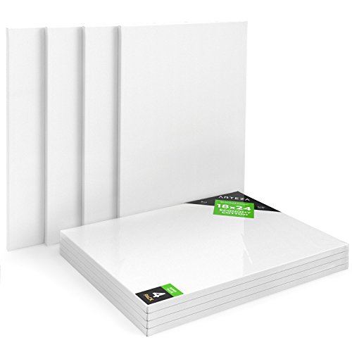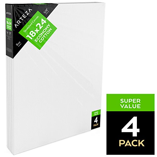 Arteza Blank Pre Stretched Canvas for Painting 18x24", Pack of 4, Primed, 100% Cotton, For Acrylic Paint, Oil Paint, & Other Wet or Dry Art Media, For the Professional Artist, Hobby Painters, & Kids