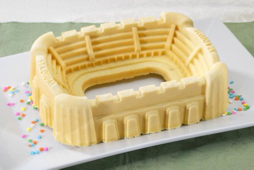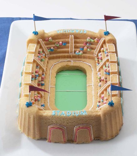 Support your home team on game day with a cake made in this unique Stadium Bundt Pan. Whether the game is soccer, football, basketball, baseball, or hockey, this pan will make you a winning host. Cakes made in this pan are the perfect accompaniment to any game day meal or snack time, and the stadium cake shows all the details of a real sports arena. Proudly made in the USA by Nordic Ware.Feature