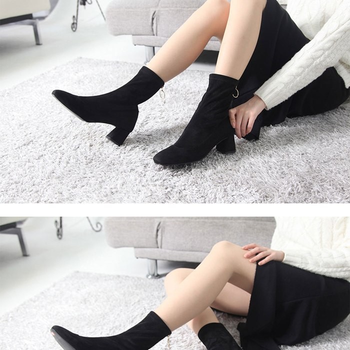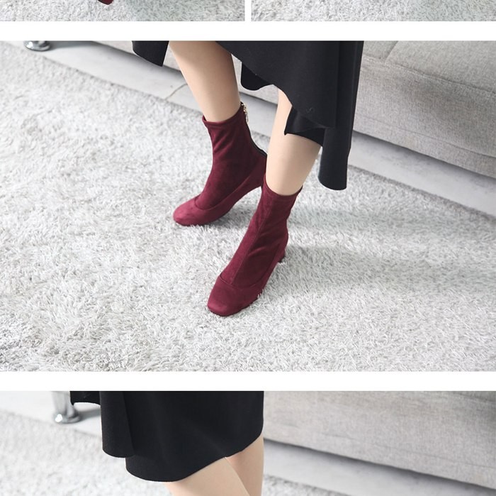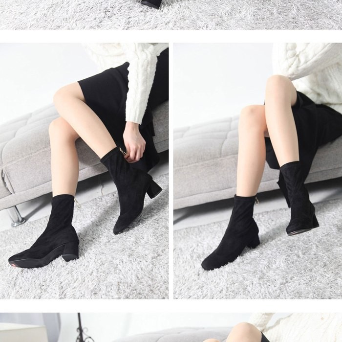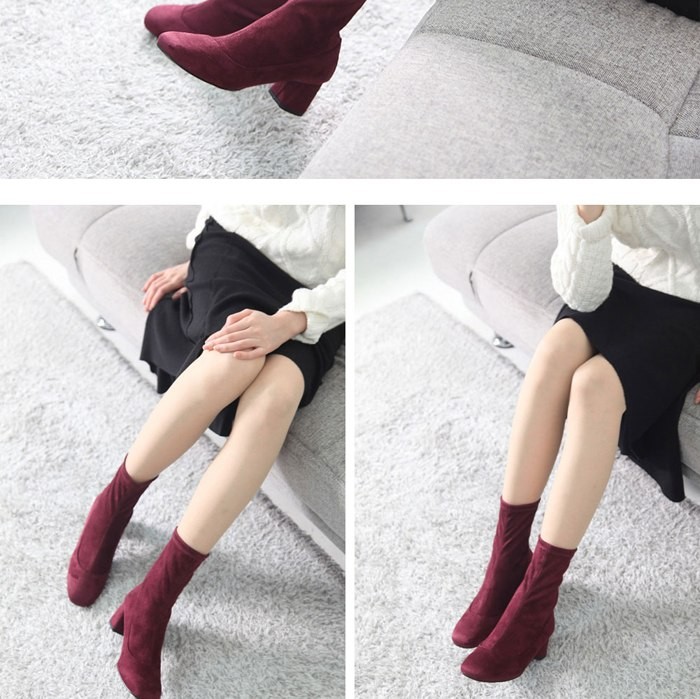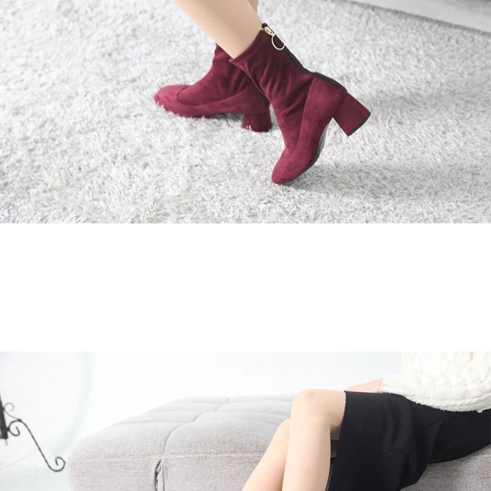 商品名:ストレッチブーツ レディース チャンキーヒール 太ヒール スエード調 2017 秋冬 ファッション 靴 婦人靴