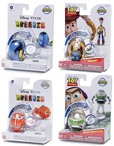 -. Feature : Hatch 'n heroes pixar figure set combo pack complete 4 pack. / Each figure starts in its simple oval shape which you can hatch into your favorite pixar characters a couple twists and you have an iconic figure to play with. / Hatch 'n heroes pixar collection toy story buzz lightyear & woody transforming figure. / Hatch 'n heroes pixar collection finding dory transforming figure. / Hatch 'n heroes pixar collection finding nemo transforming figure.