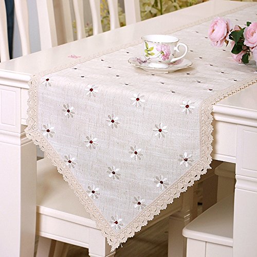 -. Title : yazi Embroidered Cutwork Floral Lace Dining Table Runner Cotton Linen Table Cover