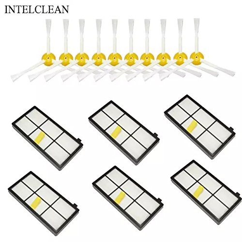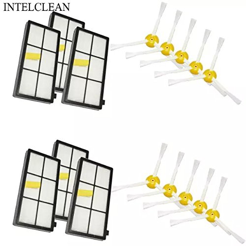 -. Binding : Kitchen -. Brand : INTELCLEAN -. Color : Black -. EAN : 0600988052475 -. Feature : Clean brushes keep your home robot operating at peak performance. / For use with iRobot Roomba 800&900 Series only. / Side brushes are easy to remove and replace as part of routine maintenance. / Filters maintain Roomba's cleaning performance while reducing infiltration of dust, pollen and other allergens into the air you breathe. / Package: hepa filter x 6pcs; 3-arms side bush x 10 pcs -. IsAutographed : 0 -. Label : INTELCLEAN -. Manufacturer : INTELCLEAN -. ProductGroup : Home -. ProductTypeName : HOME -. Publisher : INTELCLEAN -. Studio : INTELCLEAN -. Title : INTELCLEAN Accessories For 3 Armed Side Brush and HEPA Filter Replacementfor iRobot Roomba 800&900 Series 870 880 980 Vacuum Cleaners -. UPC : 600988052475