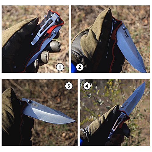 The folding hunter knife offers smooth one hand deployment for outdoor survival, tasks, fishing, camping, Every Day Carry and etc. strength, speed, safety & durability.