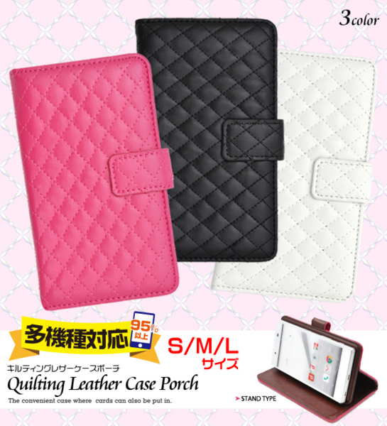 各種スマホ対応マルチタイプのキルティングレザーケースポーチ。