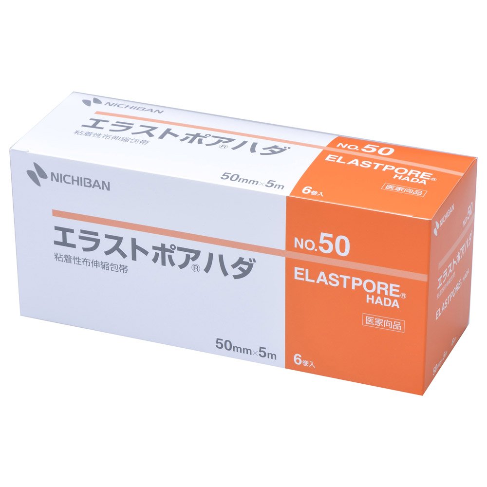 商品サイズ (幅×奥行×高さ) :74×221×103mm内容量:6巻材質:基材:綿布、粘着剤:アクリル系適度な伸縮性を持たせた綿布にアクリル系粘着剤を塗布し、固定用サージカルテープに求められる高粘着性・高フィット性・皮膚への低刺激性を満たす粘着性布伸縮包帯です。