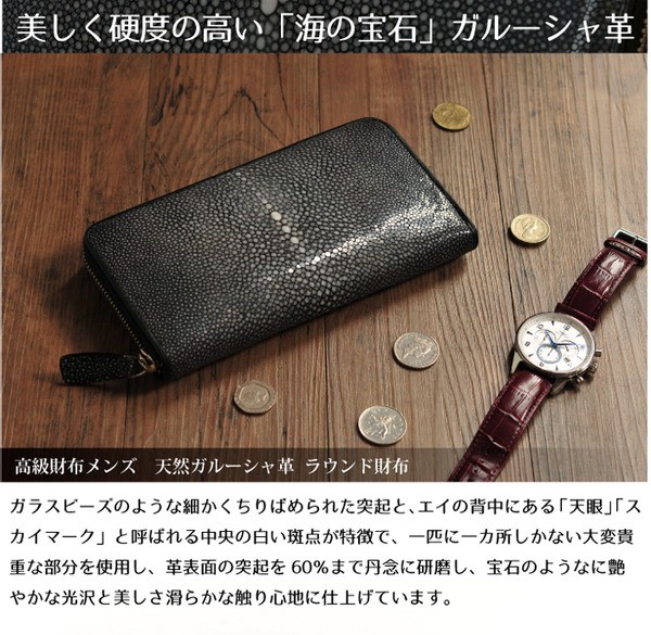 商品名 高級財布メンズ 天然ガルーシャ革 ラウンド財布