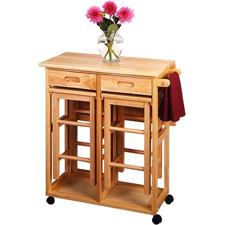 - Feature : Space saver breakfast/dining set // Stools can be tucked under the table for compact storage / Solid wood construction / Natural beechwood finish / Seating capacity: 2 / Assembly required / Tools for assembly already included / Square table with drawers and drop leaf / 2 counter-height stools with square saddle seats / Table Dimensions in Inches (L x W x H): 29.8 x 29.6 x 32.75