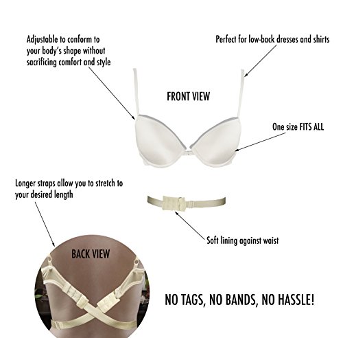 You can now wear your favorite bra with that low back style thanks to the Low Back Bra Extender which attaches to the back of your bra hooks..The fully adjustable low back strap bra converter instantly converts any back-closure bra into a lower, v-shaped back that you can wear underneath backless tops and dresses. Includes two straps; one size fits most. Total length 38" without stretching or pulling the elastic. Buy yours today!Feature