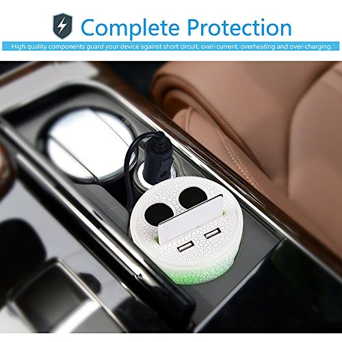 Dual Cigarette Sockets & Dual USB Ports: Dual 12V cigarette lighter can support car purifier and more digital products extended. 2 USB ports with 3.1A total output enables you to rapidly charge two tablets or phones simultaneously at their full speed