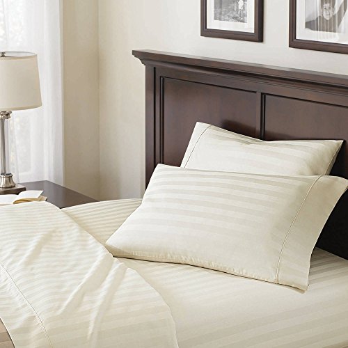 Better Homes and Gardens 100% Egyptian Cotton 400 Thread Count Damask Stripe Ultra Soft & Smooth Classic Flexi-Fit 4 Piece Sheet Set (Full, Ivory)
