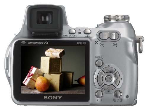 -. Binding : Electronics -. Brand : Sony -. Color : silver -. EAN : 0027242673847 -. Feature : 5.1 MP CCD captures enough detail for photo-quality 13 x 17-inch P.R.Ints / Amazing 12x optical zoom; 2.5-inch LCD display / Captures VGA (640 x 480) video clips with audio at up to 30 frames per second / AF Illuminator briefly illuminates the subject for focus in low- or no-light conditions / Stores images on Memory Stick media (32MB of internal memory included); powered by AA-size batteries -. IsAutographed : 0 -. IsEligibleForTradeIn : 1 -. IsMemorabilia : 0 -. Label : Sony -. LegalDisclaimer : We ship to the lower 48 states only. FL residents add 7% sales tax. -. Manufacturer : Sony -. Model : DSCH1 -. MPN : DSCH1 -. PackageQuantity : 1 -. PartNumber : DSCH1 -. ProductGroup : Photography -. ProductTypeName : CAMERA_DIGITAL -. Publisher : Sony -. Studio : Sony -. Title : Sony Cybershot DSCH1 5.1MP Digital Camera with 12x "Steady Shot" Zoom (Discontinued by Manufacturer) -. UPC : 027242673847