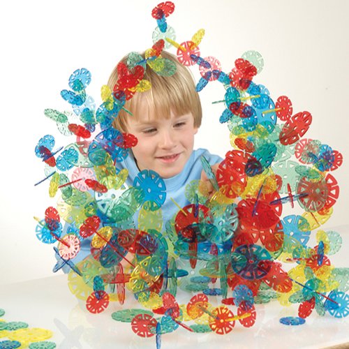 Product Description A rainbow of translucent discs, each with 8 slots, for constructing 3-dimensional structures that capture the light. Size 1 1/2 Diam. and 2 1/2" Diam. discs. 300 pc. Set. Ages 3 yrs. .". 0