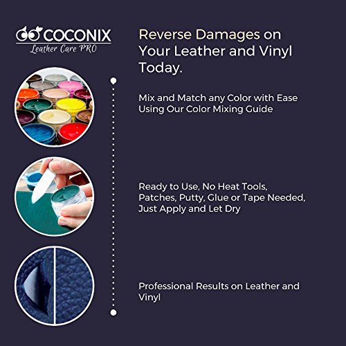 Coconix Leather and Vinyl Repair Kit - Restorer of Your Couch, Sofa, Car Seat and Your Jacket - Super Easy Instructions to Match any Color - Restore any Material, Genuine, Italian, Bonded, Bycast, PU