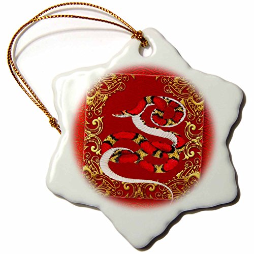 Chinese Zodiac Year of the Snake Chinese New Year Red, Gold and Black Ornament is a perfect addition to your tree or as a window decoration. This glossy porcelain ornament is a great gift for family and friends, commemorating each holiday or special occasion. Image printed on both sides; measures 3 inches. A strand of gold thread makes it easy to display this fantastic keepsake.Feature