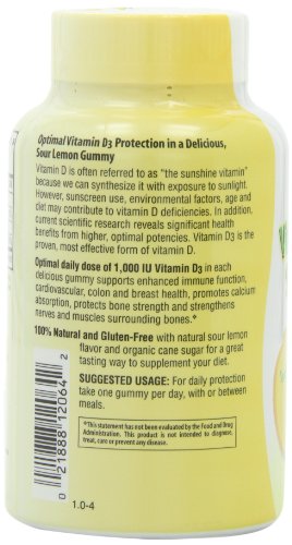 Rainbow Light Vitamin D 1,000 IU Sunny Gummies, Lemon, 50 ct