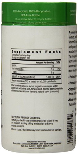 Rainbow Light Vitamin D3, 1000 IU Sunny Gummy, 100-Count