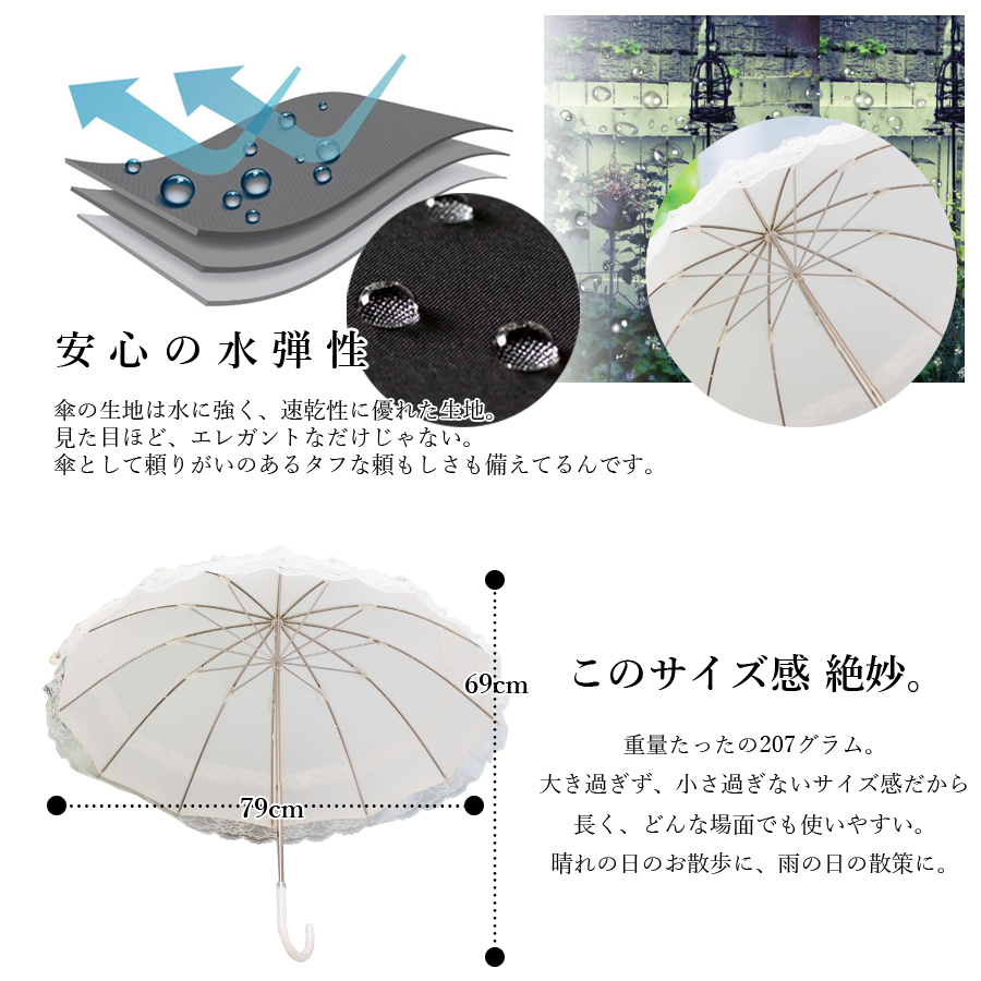 ◆日傘、雨傘どちらにおいても使えるレース傘<br>