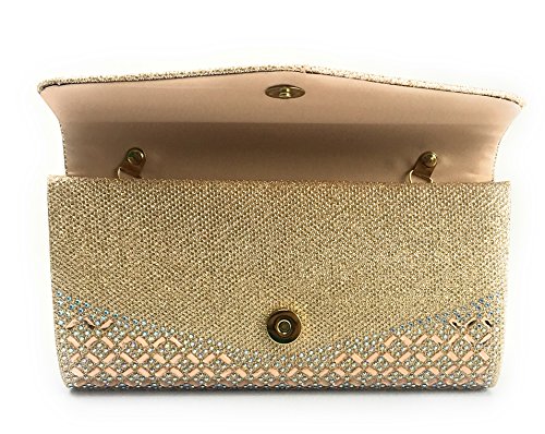 -. Title : Bella Luna Women Rhinestone Frosted Evening Clutch Bag, Classic Pleated Envelope Clutch