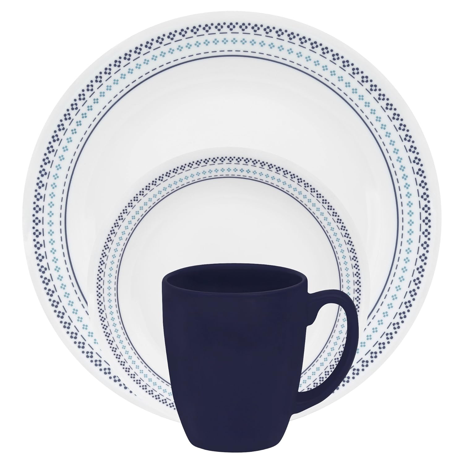 Corelle Livingware Urban Black 16-piece set, service for 4 includes 4-each-10-1/4-inch dinner plates, 4-each-6-3/4-inch bread and butter plates, 4-each-18-ounce soup/cereal bowls, 4-each-11-ounce stoneware stoneware mugs. The striking contrast of bold, black bands on white dinnerware and matching solid stoneware mugs offers a contemporary look that's simple, yet elegant and coordinates with a range of home décor styles.Corelle, brings beauty and durability to your table everyday. For more than three decades, Corelle products have epitomized the definition of durability and quality. What makes Corelle Livingware and Corelle Ultra so durable and versatile is vitrelle brand glass, composed of a unique, technologically advanced material. In a one of a kind manufacturing facility in Corning, New York, Corelle thermally bonds three layers of glass together, forms the shapes and then tempers the glass to give its final strength. Because of this process, Corelle Livingware and Corelle Ultra dinnerware have the added versatility of being suitable for reheating or even cooking in conventional, convection or microwave ovens. And with their ergonomic, lightweight design, Livingware and Ultra plates and bowls stack easily, conserving valuable kitchen space. In addition to its exceptional durability and design, Corelle products offer an array of fashionable patterns and coordinates - perfect for all kitchen decorating styles. Corelle's beautiful patterns also withstand the test of time. That's because Corelle use only food safe enamel pigments that are fired directly onto the dinnerware. You'll never need to worry about fading, scraping, scratching, or wearing off. Corelle… beautiful today.. Beautiful for years to come.