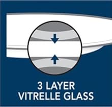 3 layers of Vitrelle Glass The 3 layers of glass are thermally bonded together by laminating a top and bottom layer of clear skin glass to a core center layer, which creates dinnerware that’s lightweight but strong, thin but nonporous. |