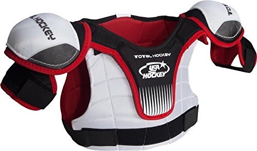 Studio : Total Hockey Publisher : Total Hockey Binding : Misc. Product Description Get in the game with the USA Hockey Learn To Play Shoulder Pads from Total Hockey. These shoulders are poly reinforced in the bicep, sternum, and clavicle areas and polyethylene-strengthened spinal protection. A multi-segmented design allows for maximum movement. Other features include a low-profile shoulder cap design, removable extended abdominal protection, adjustable bicep protection and a breathable mesh liner. The USA Hockey Learn To Play Shoulder Pads will help protect the young player looking to make an impact for his or her team and assist in their development as a player. 0