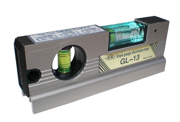 | 1台で2つの勾配測定!コンパクトで使いやすい排水勾配器です。1/50・1/100・水平・垂直が測定できます。ヒューム管測定に便利なU溝付き測定面(Φ19以上)です。 |