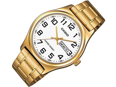 -. Title : Casio #MTP-V003G-7B Men's Standard Analog Gold Tone Easy Reader Day Date Watch
