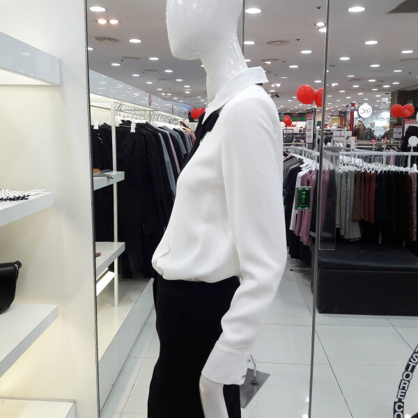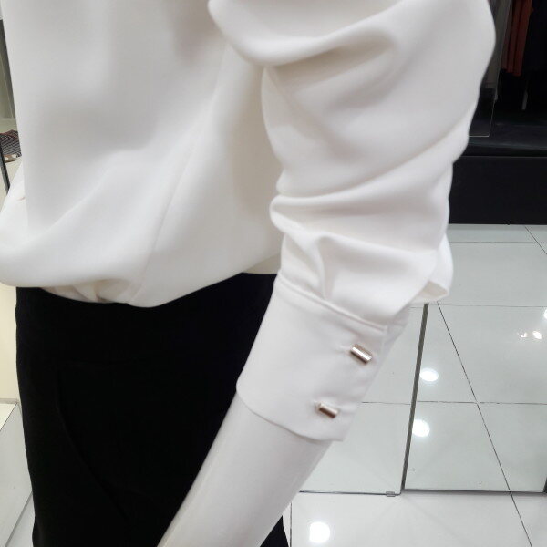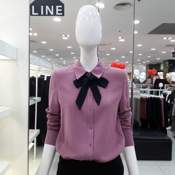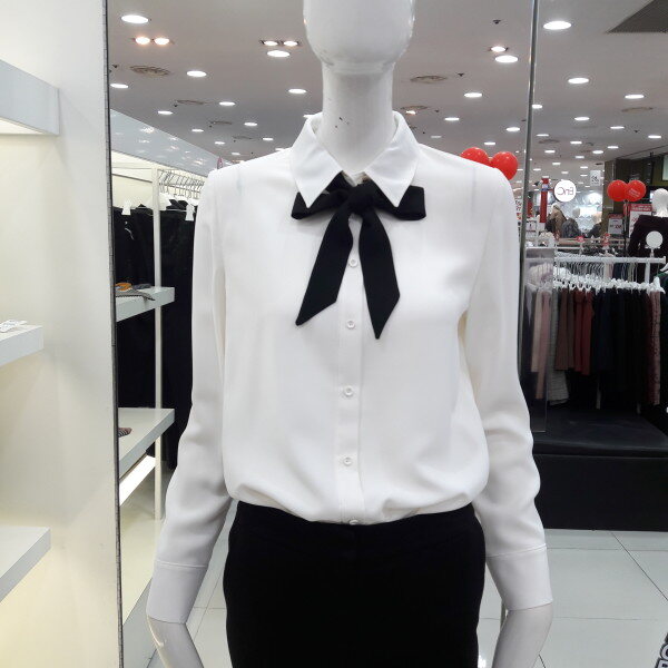 18년 신상 러블리한 블라우스입니다 기본 카라넥선에 탈착가능한 리본포인트가 여성스러우며 슬랙스 스커트에 잘 어울리는 스타일입니다