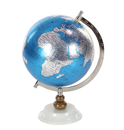 Studio : Deco 79 Publisher : Deco 79 Binding : Kitchen Product Description 9" x 13" Modern Reflections metal, plc., wood and marble globe, polished blue and silver globe, silver-finished iron axis, two-tier brown mango wood stand, bowler-hat-shaped white marble base 0