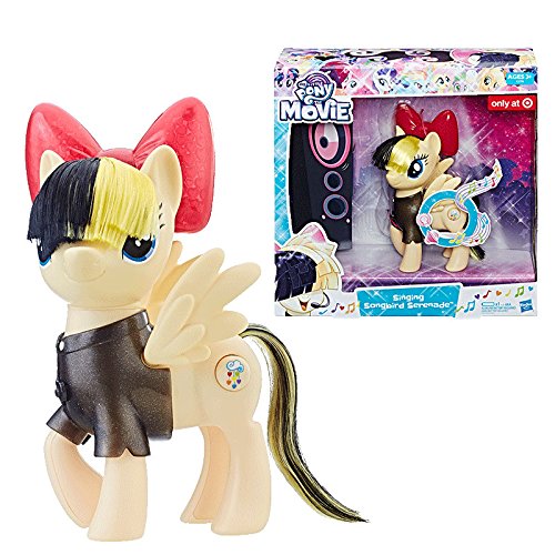 Songbird Serenade is Equestria's singing sensation of the century! Everypony can sing along with this singing pony figure by pressing her colorful cutiemark. Songbird Serenade's famous hair-do is accessorized with a bow that lights up when she sings. Help this famous pony out of her removable jacket and imagine she's resting up for her next big event! Includes pony figure, removable outfit, and instructions.Feature