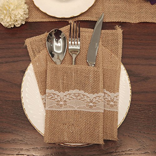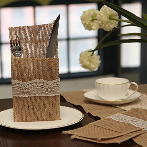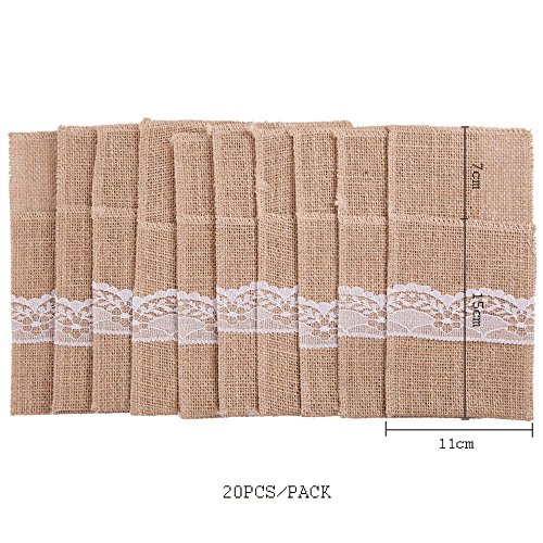 20Pcs Natural Burlap Jute Cutlery Holder Hessian Lace Pouch Bag Vintage Shabby-chic Tableware Cover Packaging Pocket Vintage Rustic For Wedding Banquet Party Decorations Christmas Decor …