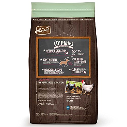 -. Binding : Misc. -. Brand : Merrick -. EAN : 0022808260080 -. Feature : #1 ingredient is real deboned chicken / Grain-Free nutrition with no gluten ingredients for easier digestibility. Recipe also includes probiotics and prebiotic fiber for optimal digestion and leading levels of glucosamine and chondroitin for healthy hips and joints from / Features lower calories and less fat to help older dogs manage their weight and L-carnitine for healthy metabolism / Small, crunchy kibble bites to help clean teeth / Cooked in the USA with no ingredients from China -. Label : Merrick Pet Care -. Manufacturer : Merrick Pet Care -. Model : 26008 -. MPN : 26008 -. NumberOfItems : 1 -. PackageQuantity : 1 -. PartNumber : 26008 -. ProductGroup : Pet Products -. ProductTypeName : PET_SUPPLIES -. Publisher : Merrick Pet Care -. Size : 4 lb -. Studio : Merrick Pet Care -. Title : Merrick Lil' Plates Small Breed Grain Free Real Chicken + Sweet Potato Small Breed Senior Dry Dog Food, 4lbs. -. UPC : 022808260080