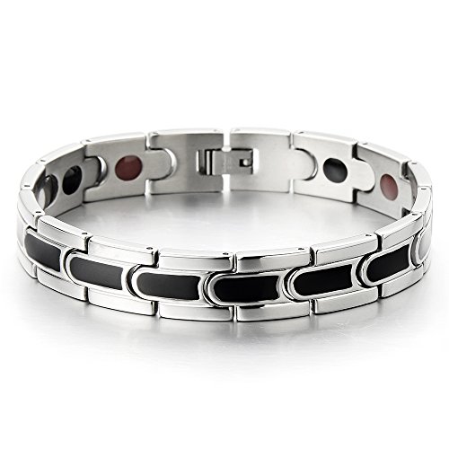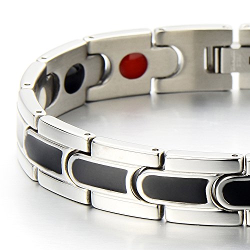 -. Title : Stainless Steel and Black Enamel Men's Bracelet with Energy Magnets and Germanium,Free Link Removal Kit