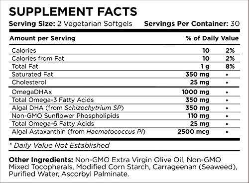 100% VEGAN OMEGA DHA SUPPLEMENT - OmniBiotics Vegan Omega DHAx is fish-free, mercury-free, and specially formulated with vegans, vegetarians and health conscious consumers in mind. Our MD-Certified, formula has been extensively researched for efficacy. Each serving contains 350 mg of Algal DHA, 350 mg of Omega-3, and 20 mg of Omega-6 essential fatty acids. Super antioxidant, astaxanthin, and non-GMO sunflower phospholipids are added to create a unique, plant-based omega supplement.