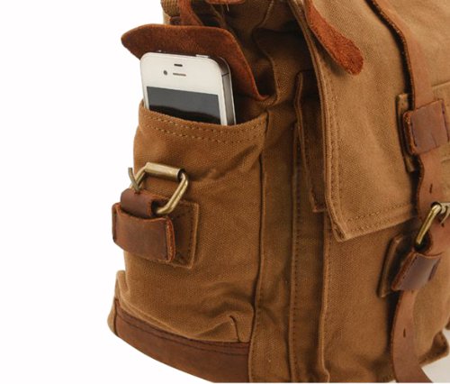 -. Feature : Gender: Men and Women / Soft material, pretty durable - thick canvas and thick leather. Retro style, well sewn craftsmanship. / Adjustable shoulder straps for carrying comfort. Brossbody bag, shoulder bag, or messenger bag, variety of usage is entirely up to you! / Exterior: 2 front pockets and 2 sides pockets, and a large main compliment. Buckles are magnet snaps, are easy open and closed. / Rucksack-styled thick canvas messenger bag is great for college, travel and camping.