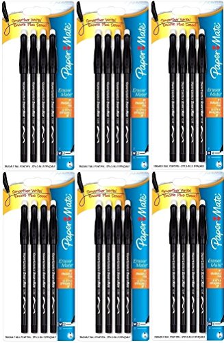 -. Title : Paper Mate Eraser Mate Stick Ballpoint Pens, Medium Point, Black Ink, Total: 24 Pens (4 X 6 Count Packs)