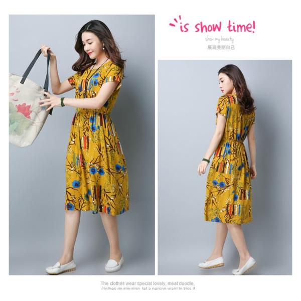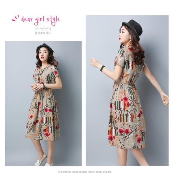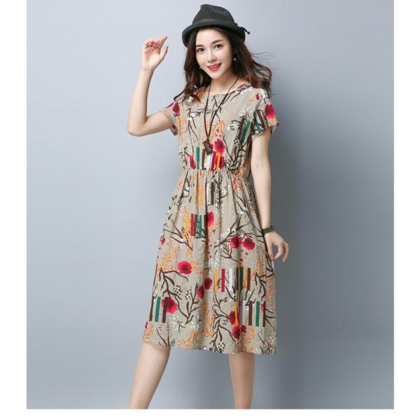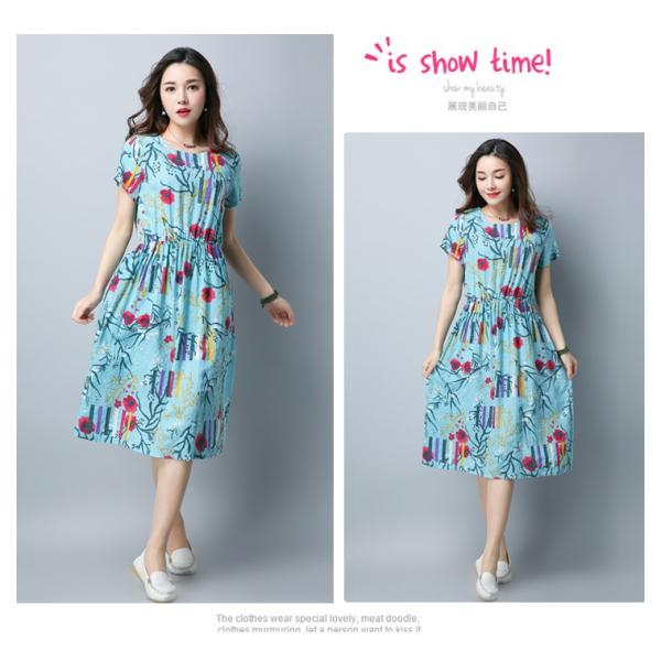 花柄デザインのゆったりウエストワンピースです。