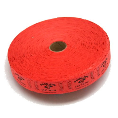 - 2000 Red Good For One Drink Single Roll Raffle Tickets