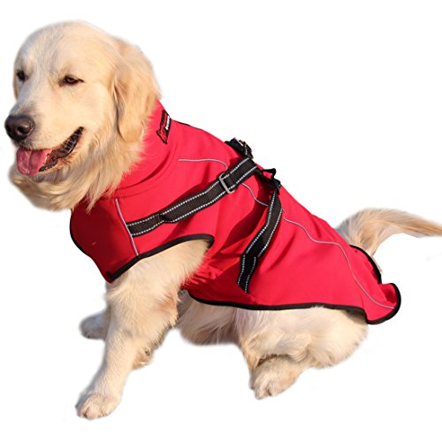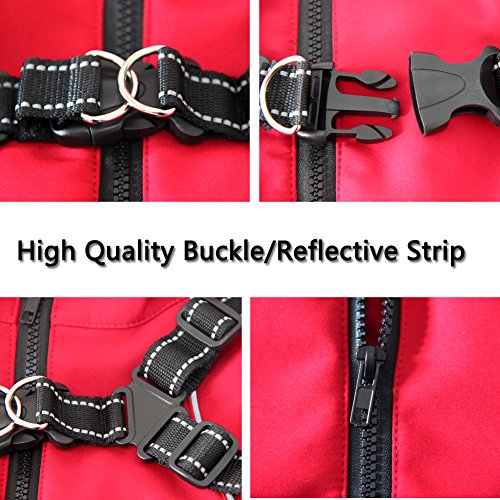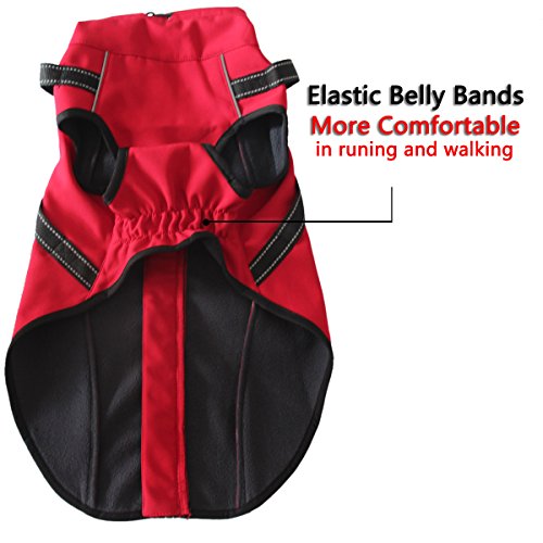 -. Feature : Premium elastic fabric:waterproof windproof breathable;Composite fleece inside: warm and comfortable. / Dog Jacket with Integrated Back Traction Belt,Features:Adjustable strap length,Reflective ribbons,2 metal D-rings,High-quality plastic buckle and triangle buckle. / Fashion Red,high quality large gear zipper, pulling very smooth;EASY PUT AND OFF,back and chest reflective strip,safer at night. / Elastic Belly Bands,make dogs more comfortable in runing and walking.Neck collar can shrink, protect neck, more warm. High-quality production process,durable,washable. / Best for Medium to Large Dogs,Size: