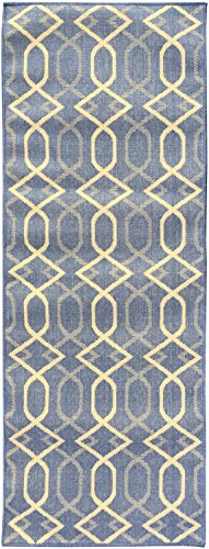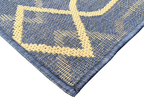OTTOMANSON JARDIN COLLECTION NATURAL DIAMOND TRELLIS DESIGN INDOOR/OUTDOOR JUTE BACKING RUNNER RV PATIO MAT RUG, 2'7" X 7'0", BLUE