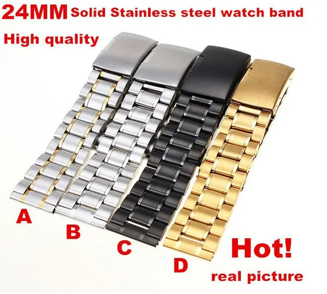 도매 높은 품질 10 개/몫 24 미리메터 솔리드 스테인레스 스틸 시계 밴드 시계 스트랩 4 색상 가능