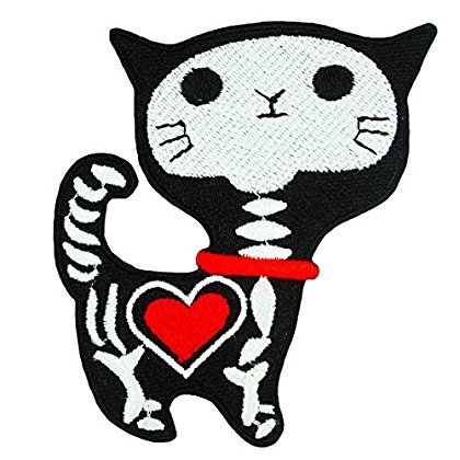 Cute Cat Skeleton Cartoon Embroidered Iron on Applique Patches