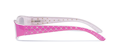 Stylish: Sides of frames feature an elegant quilted pattern with inset crystals. Pillow shaped lenses compliment all face shapes
